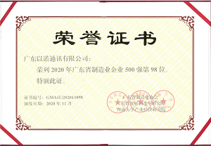 2020年11月26日,由廣東省制造業(yè)協(xié)會、廣東省發(fā)展和改革研究院、暨南大學產(chǎn)業(yè)經(jīng)濟研究院主辦的“2020廣東省制造業(yè)發(fā)展年會暨廣東省制造業(yè)500強企業(yè)峰會”在中山市舉行。本屆年會以“推動制造業(yè)高質量發(fā)展——擁抱5G+工業(yè)互聯(lián)網(wǎng)、搶抓國內大循環(huán)機遇”為主題,會上發(fā)布了2020年廣東省制造業(yè)500強企業(yè)研究報告,福日電子二級控股子公司廣東以諾通訊有限公司榮列2020年廣東省制造業(yè)企業(yè)500強第98位。